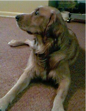 Here's a pretty picture. Look at those buffed muscles and powerful jaw . . . The ears listening intently for the sound of a criminal or falling treat . . . The eyes darting around searching the room . . . My powerful sniffer checking out everything from here to Timbuktu. No applause, please. |