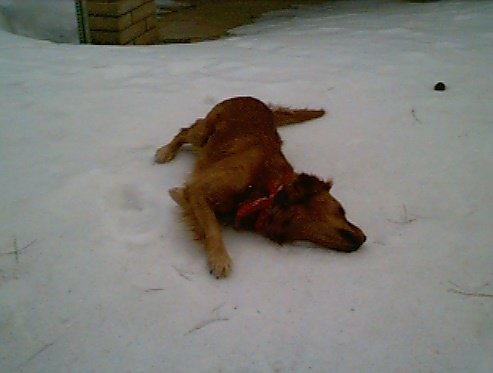 I roll everywhere, but snow is my favorite. This takes me back to my roots in Northern Michigan. I just can't get enough of it. Every time out of the van the first thing I do is stop, drop, and roll! I can't believe you humans put on all those clothes just to play in the snow. |