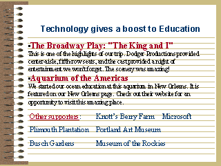 This is an excerpt from our 'Thank You' page. By trading admission for a link from our website we were able to access educational facilities we could not have afforded otherwise. Our school on the road concept intrigued many people.